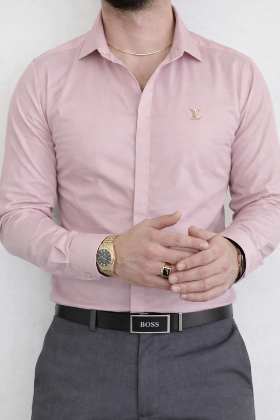 پیراهن مردانه مجلسی پارچه دوشین دکمه مخفی