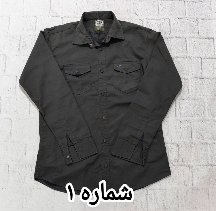 پیراهن کتان دوجیب دکمه فلزی مارک JEEP_ برش اندامی مارک جیپ سایز معمولی
