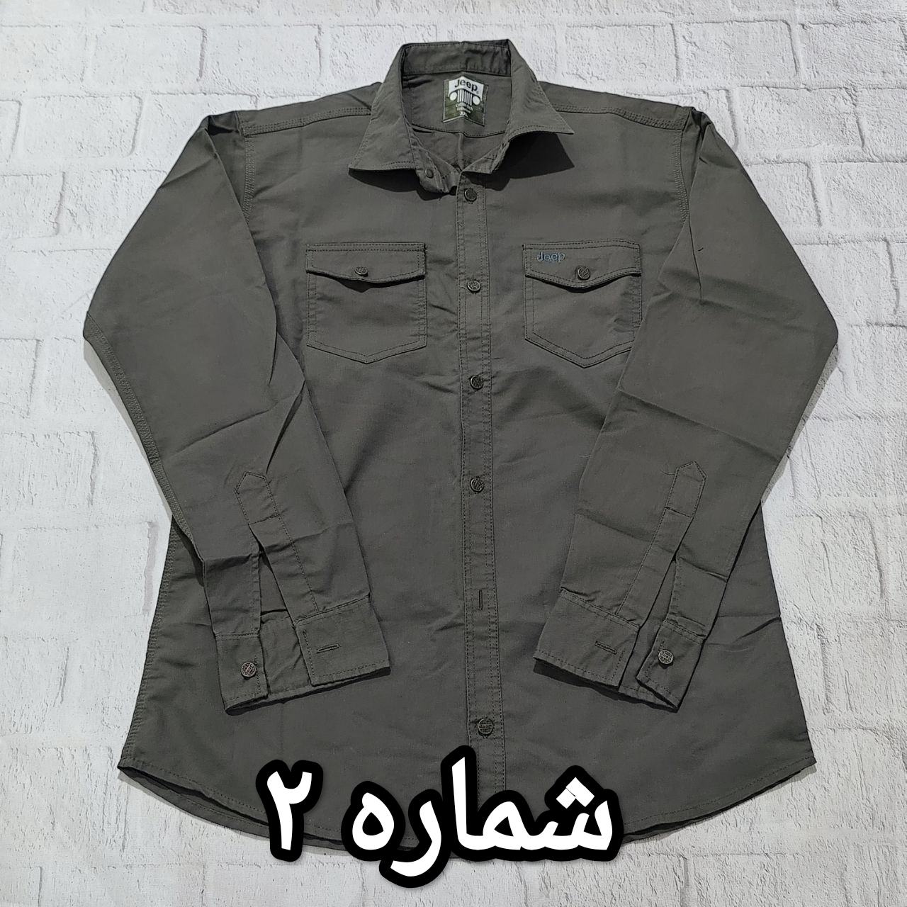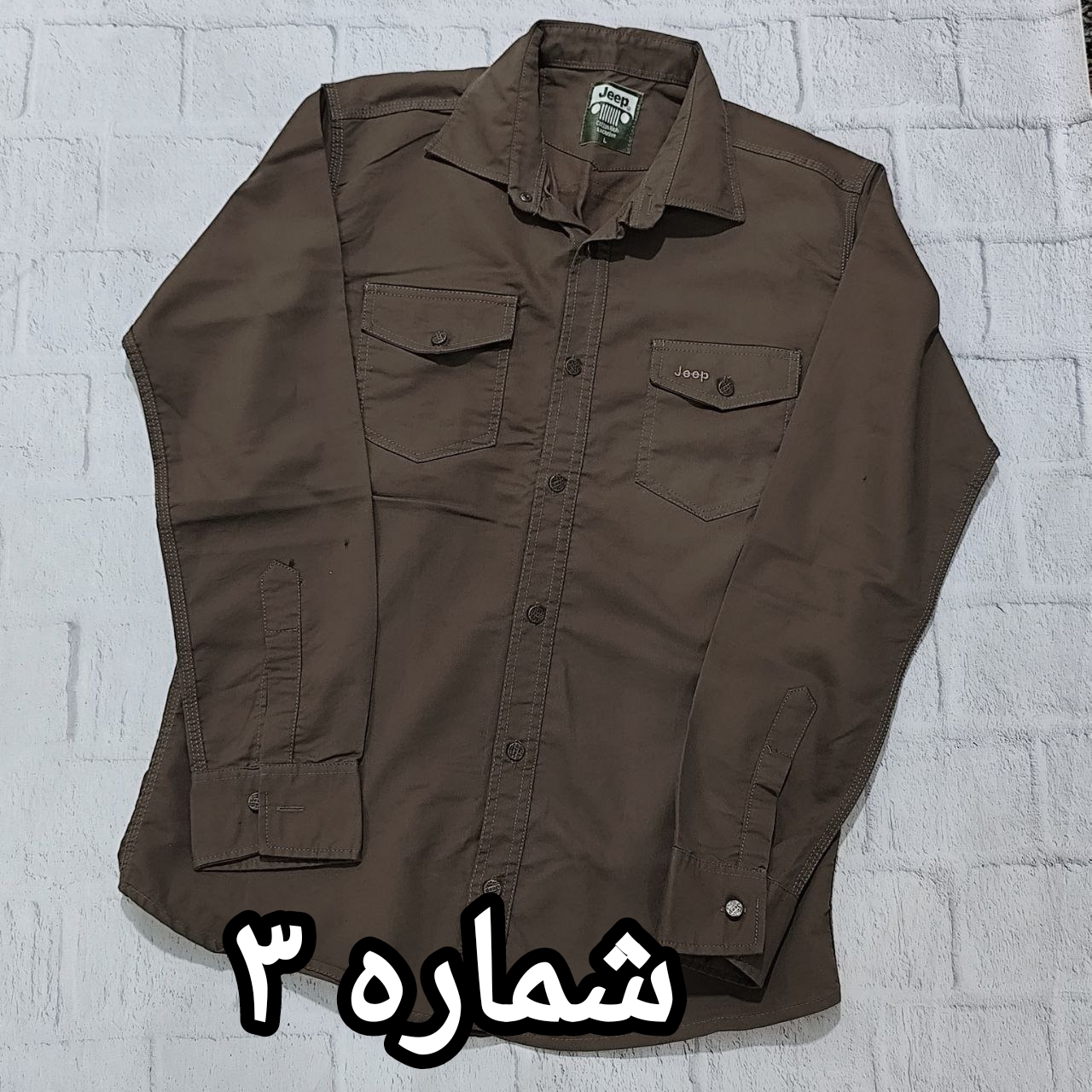 پیراهن کتان دوجیب دکمه فلزی مارک JEEP_ برش اندامی مارک جیپ سایز معمولی